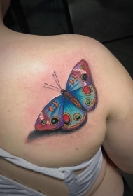 后背纹身女 女生后背上彩色的蝴蝶纹身图片