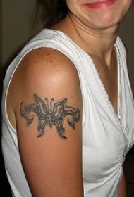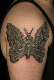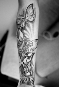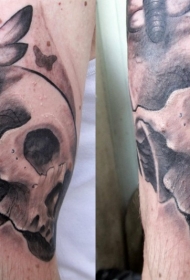 手臂壮观的黑灰风格骷髅和蝴蝶纹身图案