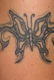 手臂点刺黑白蝴蝶与树叶碎石纹身图案