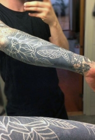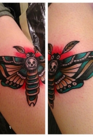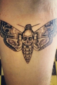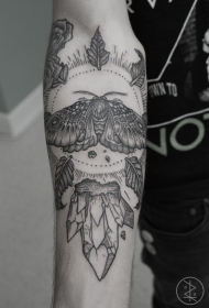点刺风格的黑色飞蛾和骷髅手臂纹身图案
