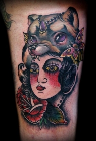 old school彩色吉普赛女巫与动物手臂纹身图案