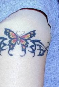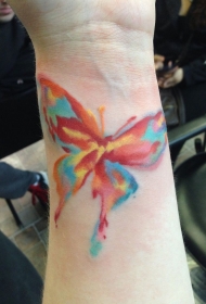 女孩手臂彩色的水彩蝴蝶纹身图案