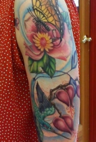 new school骷髅和神秘蝴蝶彩色手臂纹身图案