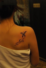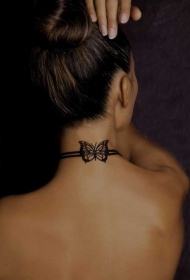 美女时尚肩部和颈部图腾蝴蝶纹身图案
