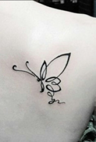 女生背部黑色线条创意抽象唯美蝴蝶纹身图片