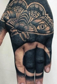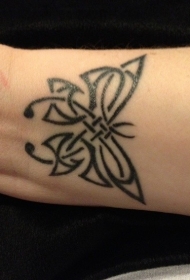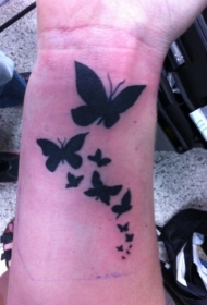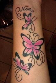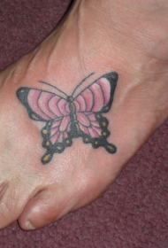 可爱的粉红色与黑色蝴蝶脚背纹身图案