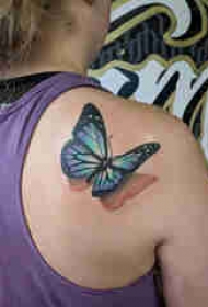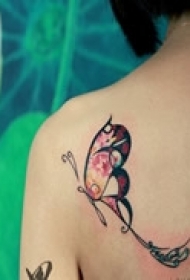 百乐动物纹身 女生肩部彩色的蝴蝶纹身图片