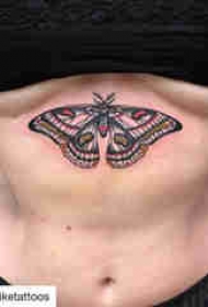 女生胸下纹身 女生胸下黑色的蝴蝶纹身图片