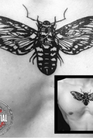 纹身胸部男 男生胸部骷髅和蝴蝶纹身图片