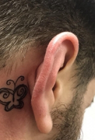 纹身耳后男 男生耳后黑色的蝴蝶纹身图片