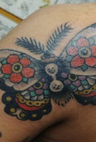 彩色蝴蝶肩部纹身