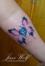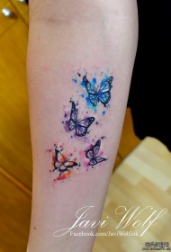 小臂泼墨蝴蝶翅膀与心形钻石彩色纹身图案