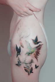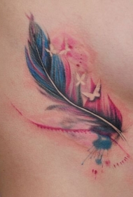 侧肋泼墨彩色羽毛蝴蝶纹身图案