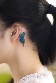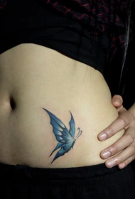 美女腹部漂亮的蓝蝴蝶纹身图案