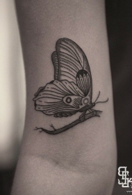 手臂上纹身黑白灰风格点刺纹身蝴蝶纹身植物纹身素材花朵纹身图片