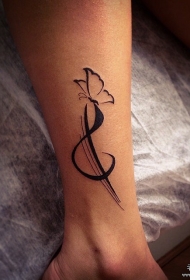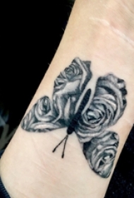 脚踝黑灰蝴蝶与花蕊纹身图案