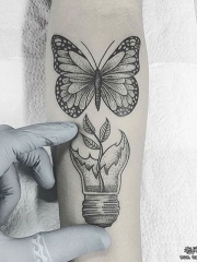 小臂灯泡植物蝴蝶点刺欧美纹身图案