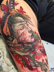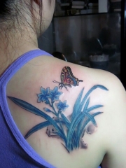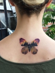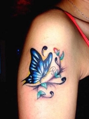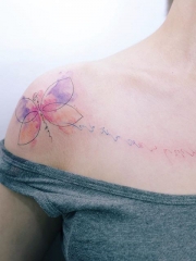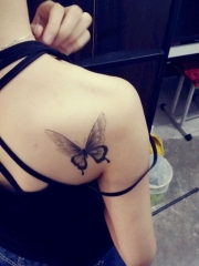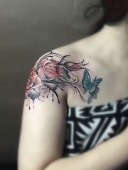 肩部水墨彩绘美丽的蝴蝶纹身图片