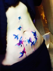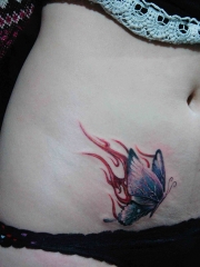 腰部美丽的蝴蝶与花蕊彩绘纹身图案