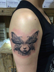 优雅女孩肩部梦幻蝴蝶纹身图