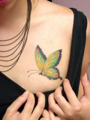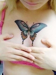 美女胸部一只彩色蝴蝶纹身图案大全