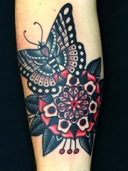 old school个性的蝴蝶花纹身图案
