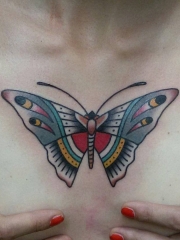 胸部old school蝴蝶彩色纹身图案