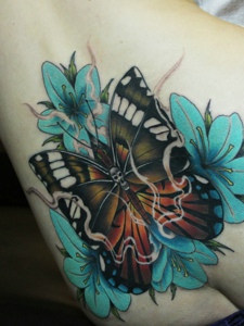 一幅漂亮的花蝶图腾纹身