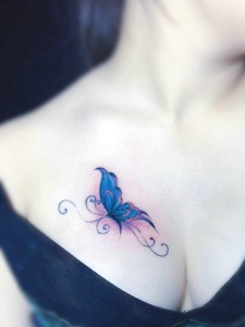 女性胸前蝴蝶图腾纹身