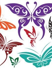 欧美女孩身后彩色小蝴蝶纹身图案