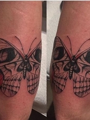手臂上的骷髅蝴蝶纹身图片