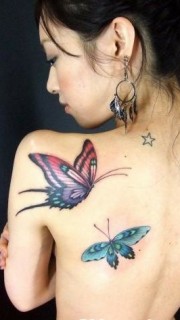 最抢眼的女性胸部蝴蝶纹身