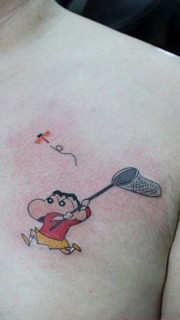 男士蜡笔小新捕蜻蜓胸部纹身