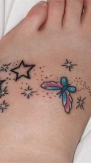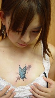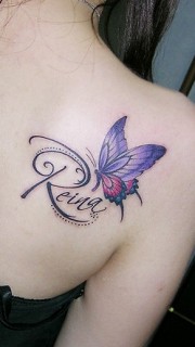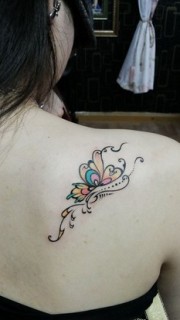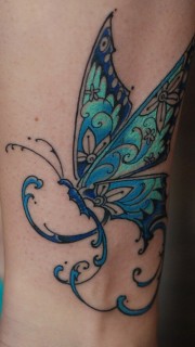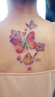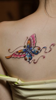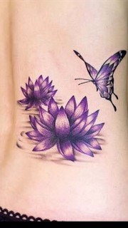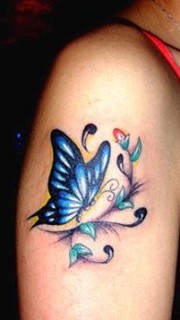 个性臀部唯美漂亮的蝴蝶和花纹身