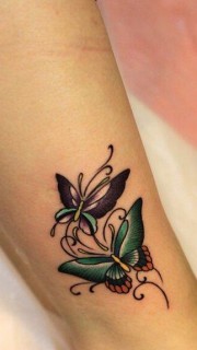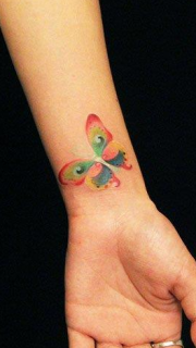 手腕精巧标致的彩色蝴蝶纹身图案