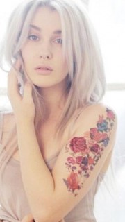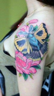 美女花旦肩臂蝴蝶花卉纹身图案