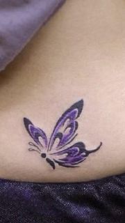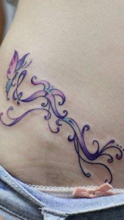 靓女腰部前卫精美的图腾蝴蝶纹身图案