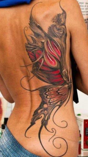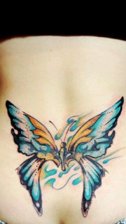 女神腰背上个性蝴蝶文身图片