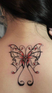 后背潮流小巧的蝴蝶纹身图案