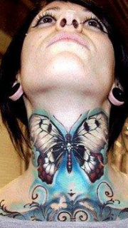 女人脖子处精美时尚的蝴蝶纹身图案