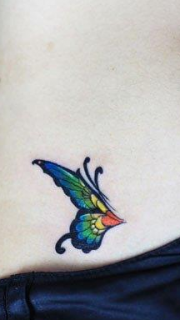 美女腰部精美的彩色蝴蝶纹身图案