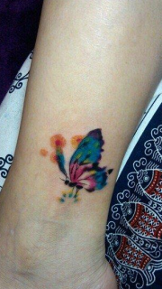 脚踝悦目好看的彩色蝴蝶纹身图案
