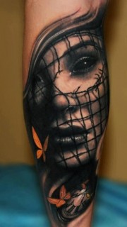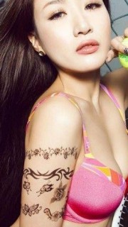 靓女手臂清晰精美的图腾蝴蝶纹身图案