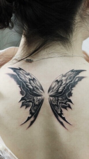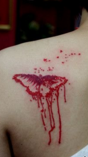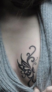 潮流性感的女人胸部图腾蝴蝶纹身图片