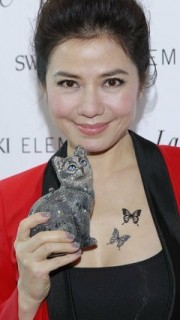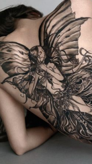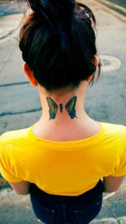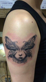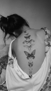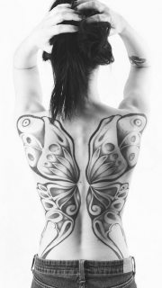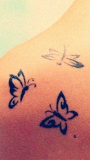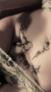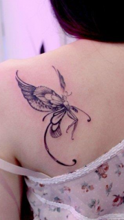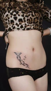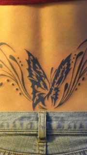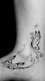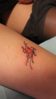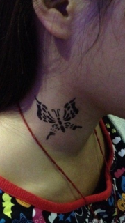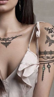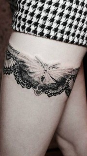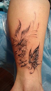 时尚女性腿部漂亮好看的蕾丝蝴蝶纹身
