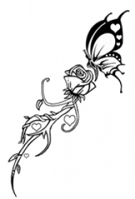黑色线条素描创意文艺唯美蝴蝶和玫瑰纹身手稿