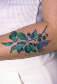 女生手臂上彩绘清新植物与蝴蝶纹身图片