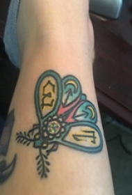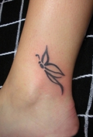 女生脚腕上黑色线条文艺小清新蝴蝶纹身图片