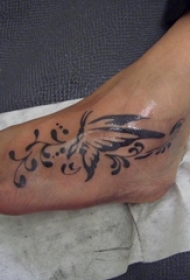 女生脚背上黑色线条创意唯美蝴蝶纹身图片