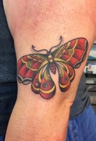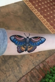 男生手臂上黑色写实小动物蝴蝶纹身图片